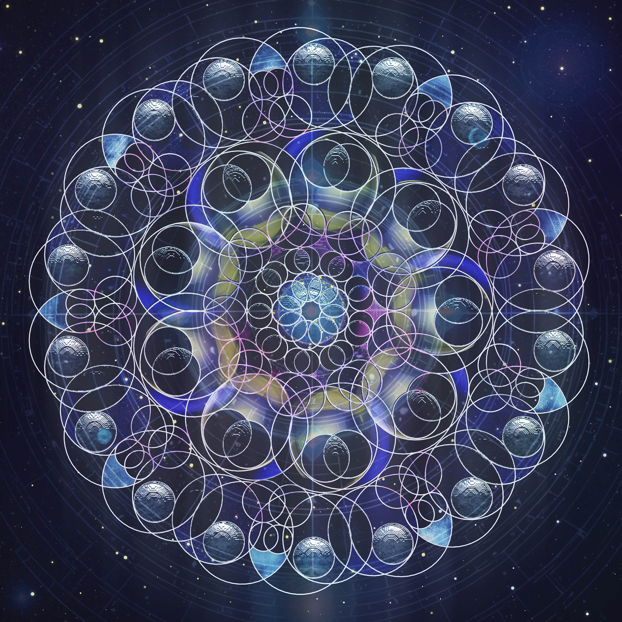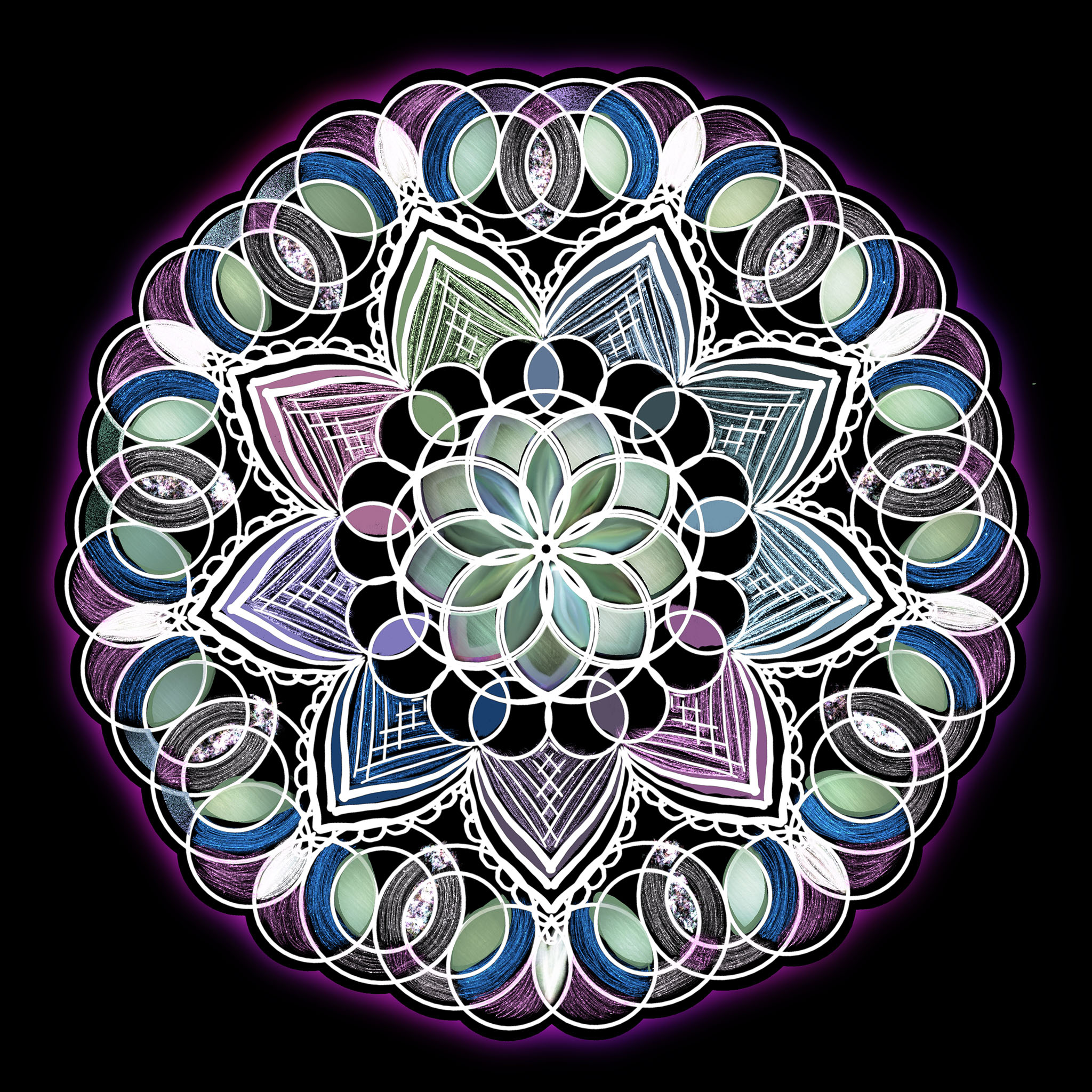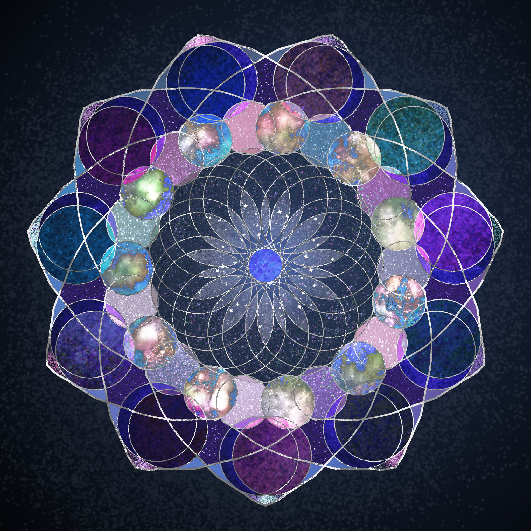 Contemplation Mandalas DharmaEast by SouthwestDivine DestinyLapis Light of True SightFrom Many, OneFlourite’s FloralightUnexpected InsightsMovements of the SpheresUnfoldingCycles of ExpansionQuantum ConnectionRoyal Blue BenedictionEmerald Heart AwakeningCosmic BlueprintCosmic CarouselRhapsody of RichesForest SanctuaryIn Pursuit of BlissReverberationsReverberations IILet There Be Peace